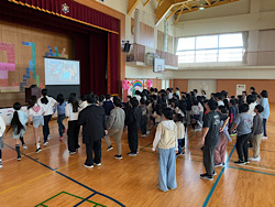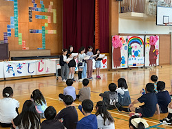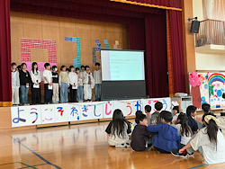 今日は1年生を迎える会をしました。5年生による学校紹介&エクササイズで盛り上がったり、6年生の学校にまつわるクイズを楽しんだりと、1年生は根岸小学校のいいところをたくさん知ることができました。4年生は飾りづくり、3年生は花のアーチでお迎え、2 年生はメダルのプレゼントなど、各学年が今日のこの日のために準備をしたり練習をしたりと頑張ってくれたおかげで、温かいすてきな時間になりました。