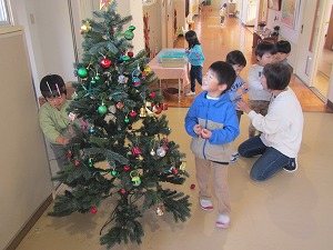 「♪にんじゃなんじゃもんじゃ」の踊りが大好きになった年少組はポーズも素敵!年少組も遊戯室の窓から紙テープの吹き流しをなびかせながら、目に見えない「風」を感じていました。給食もみんなでおいしく食べています。