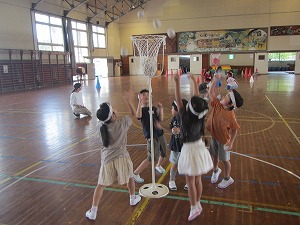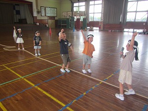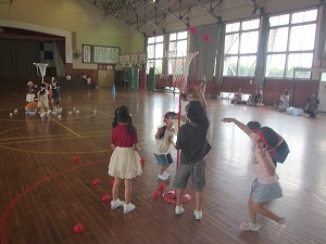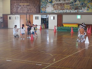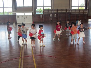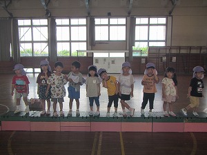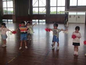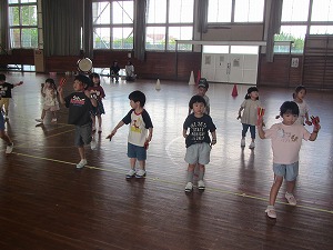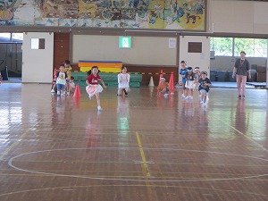 いよいよ明日は新津第一幼稚園の運動会です。今日も子どもたちは小学校の体育館に出掛けて、元気に「よーいどん」で走ったりみんなで踊ったりしました。