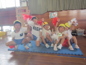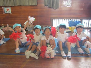 法被を身に着けた年長・年中児の「よっちょれ」、それから全園児による「よさこい」も、格好よくきまり、応援席からたくさん拍手が起こりました。
