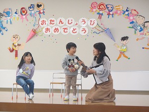雨の一日です。小学区の昼休みに3年1組さんが幼稚園に遊びに来てくれました。年少組は保育室で、触れ合い遊びを3年生と一緒に楽しみました。