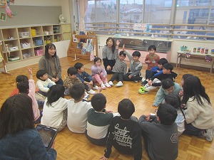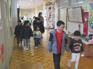 楽しい交流の時間はあっという間に終わりになってしまいました。ぱっちんガエルをおみやげにもらい大事に手にしていた幼稚園の子どもたちでした。2年1組のみなさん、ありがとうございました。