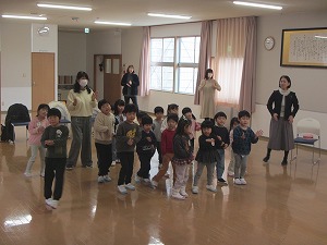 毎月、園長先生から「その月の誕生花」を教わります。1月は「福寿草」。みんなのだいすきな「♪カレンダーマーチ」にも登場する黄色い可憐なお花の花言葉は「幸福を招く」だそうです。