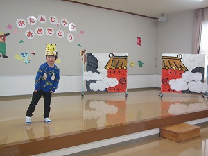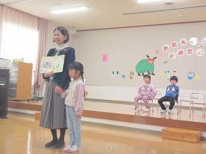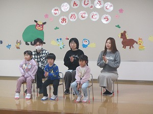 1月生まれの誕生会を行いました。なんと!今日が誕生日の子どももいます!「お誕生日 おめでとう~」
