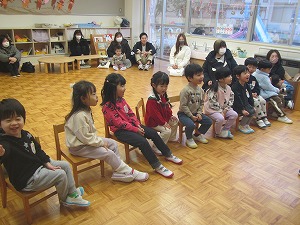 昨日の年長・年中組に引き続き、今日は年少組の保育参観と学級懇談会でした。子どもたちは大好きなお家の方が保育室に来てくれて大喜び!いつもと違う雰囲気に少し戸惑い、お家の人のそばで過ごす姿もありましたが、少しずつ表情が和らいでいった子どもたちでした。
