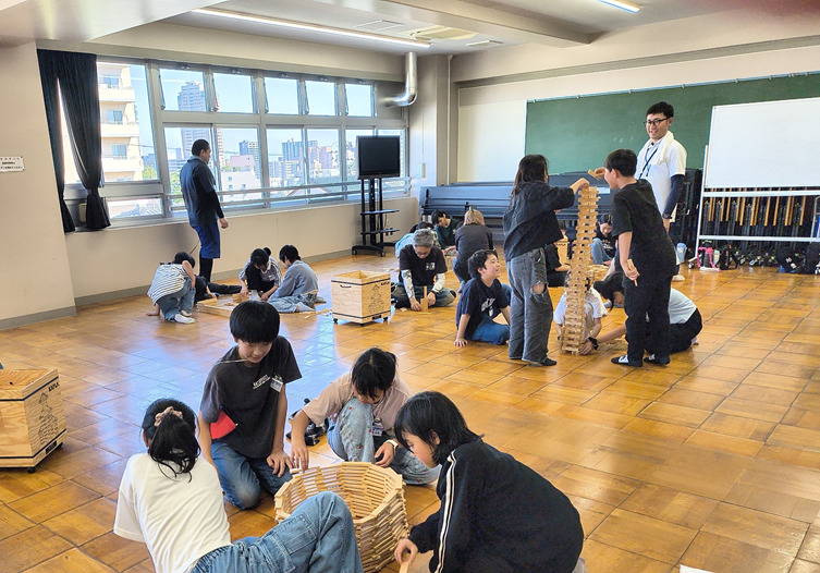 カレー作りの後片付けを終え、午後は、カプラ体験。小さな木の積み木を組み立て、いろいろな形を作ります。グループで協力し、難しい形も完成させています。この後は、夕食、キャンドルファイヤーです。ここまで、全員、元気に活動に参加しています。