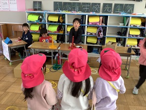店の番をすることも大切な役割のひとつです。相手意識をもって、笑顔で、心が伝わるように接します。1年生の成長ぶりに驚かされるひとときになりました💛園児たちも笑顔が爆発していました!!4月に入学してきた頃の1年生とは大違い!!本当にお兄さんお姉さんになりましたね!!