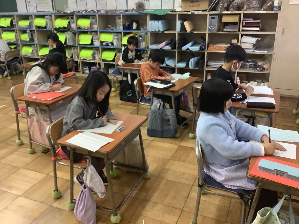 書写の時間で身に付けた姿勢、鉛筆の持ち方、字の書き方をもとに、一文字一文字に心を込めて、丁寧に仕上げています。