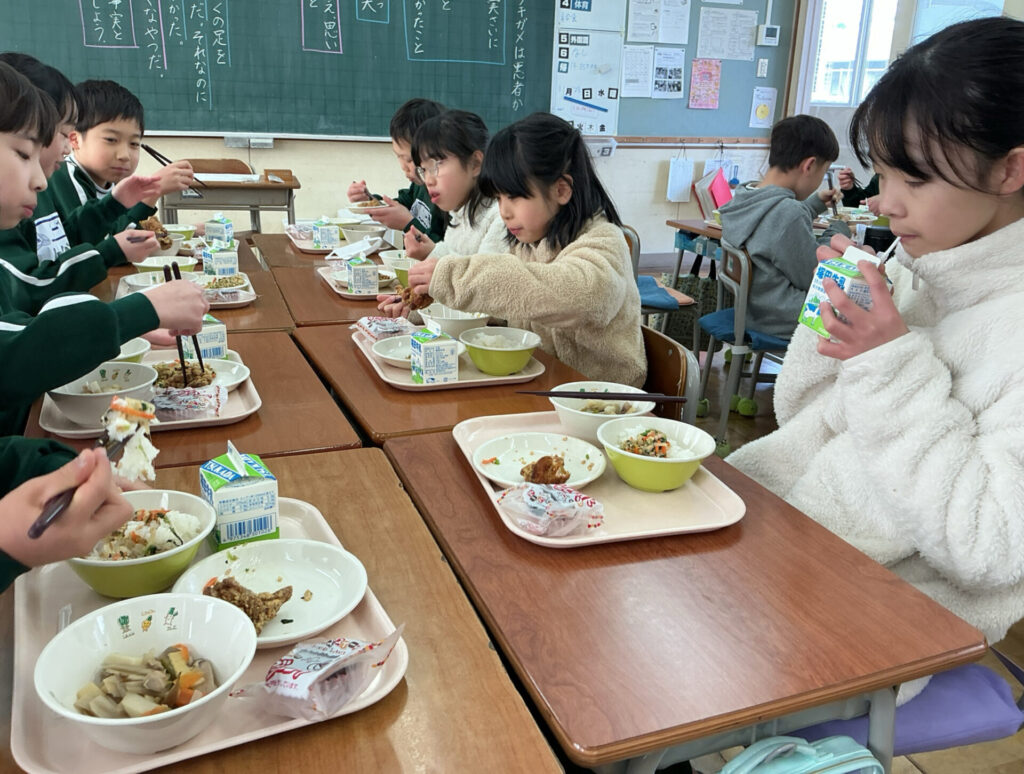 今日は、のっぺ汁、鶏肉の半身揚げ、きりざいと新潟の郷土料理でした。そして、浜っ子フェスティバルのデザート選べる券で、当選者の児童が選んだ「ガトーショコラ」が付きました。子どもたちは、大興奮していまし …