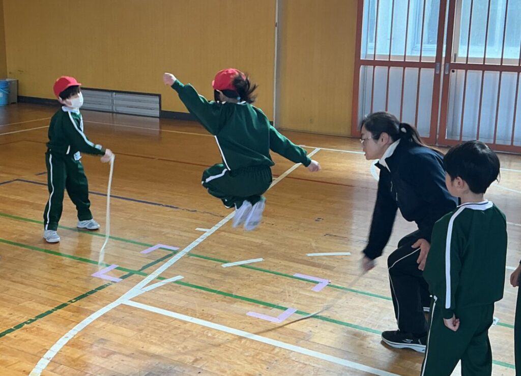 体育の授業や休み時間に長縄跳びを楽しむクラスが増えてきました。  今日の2時間目の体育館でも、1年生の皆さんが体育の時間に担任の先生と長縄跳びを楽しんでいました。1年生の皆さんが上手に跳べるように …