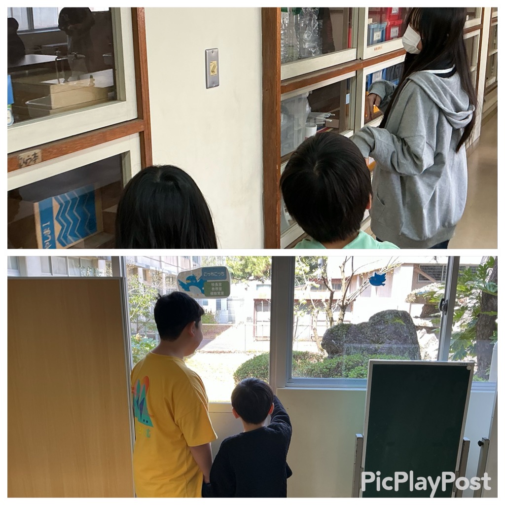 1年生と6年生で学校探検をしました。 「ここは、〇〇をする教室だよ」と、6年生は丁寧に説明をしながら回っていました 終わった後、「放送室にマイクがありました。」、「体育館ステージに登る階段を見つけ …