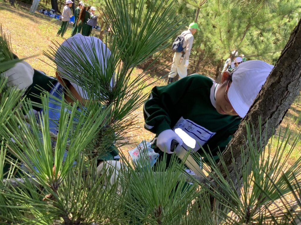 保護者ボランティアの皆さんや地域の方々からもご協力をいただき、海浜植物園の松林の除伐作業を行いました。