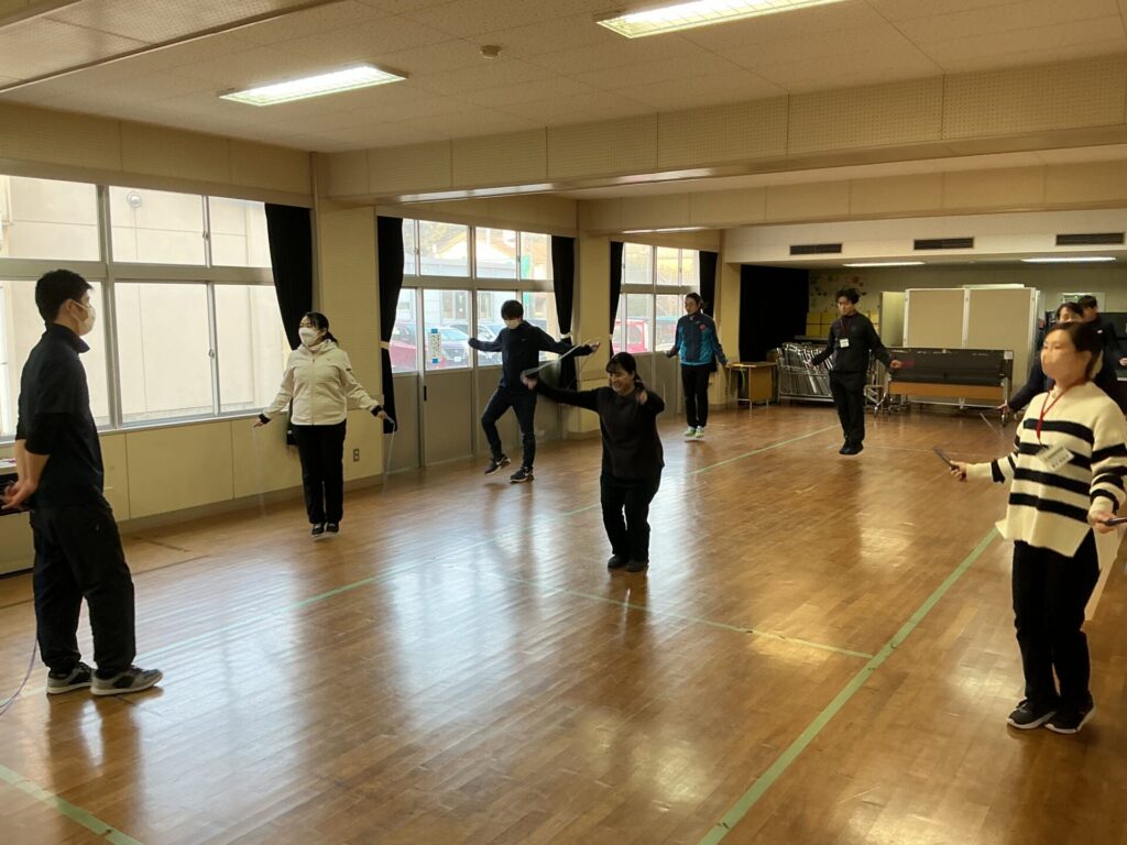体育部が、職員向けに「なわとび講習会」を開きました。よりよく、子どもたちになわとび指導ができるように、コツを教わりました。子どもたちと一緒に、なわとびを楽しんでいきたいと思います。