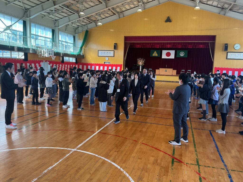 本日、4名の先生との離任式を行いました。
