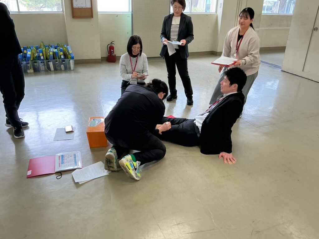 新しい先生方を迎え、新年度がスタートしました。毎年、給食が始まる前に食物アレルギーについての研修を行っています。今年度は、万が一のときにも、迅速に対応できるよう、シミュレーション研修を実施しました。緊急時の対応方法や、練習用のエピペンを使って打ち方を練習しました。今度も、安全対策に努めていきます。