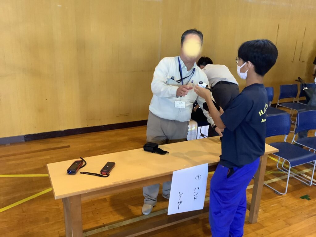 測量・ドローン・ハンドレーザー(対象物までの距離が分かる)など、土木や建設にかかわる機器を体験させてもらいました。将来、「インフラ整備・災害復旧・除雪・耐震住宅の建築などに携わる土木業や建設業に就きたい。」と思った生徒も多くいたことでしょう。