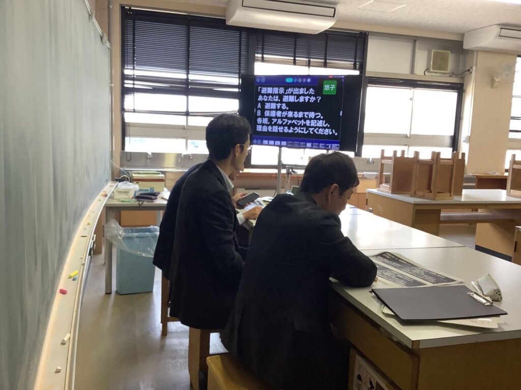 生徒の感想:今回の避難訓練を終えて、家に1 人でいる時に避難指示が出るという状況には今後、遭遇する可能性が高そうだと思うので、もしそのような状況になった時にどのように判断をしたらよいのかがわかってとてもためになった。