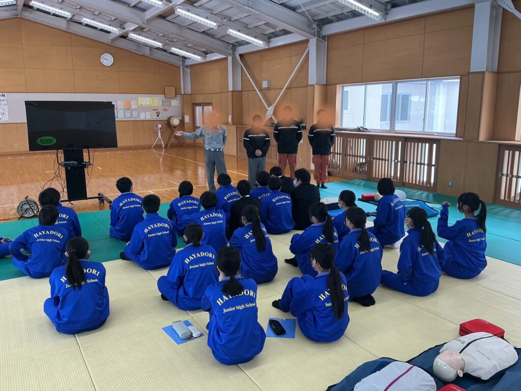 2月4日(水)北消防署の救急隊員をお招きし、保健体育(保健分野)の授業を行いました。胸骨圧迫・AEDの操作を中心に生命を救うための行動を学びました。いざというとき「勇気をもって、冷静で迅速な応急手当をする」ことは、大切な生命を救うことになりますね。