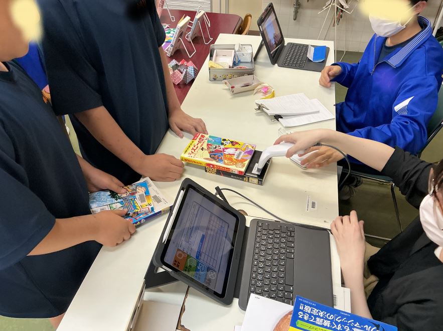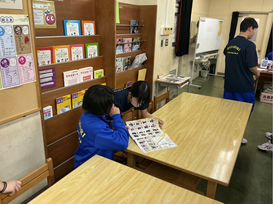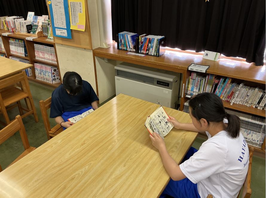 1年生向けのオリエンテーションが終わり、昼休みには、大盛況です。貸出カウンターは、長蛇の列。お目当ての本は、見つかったかな? たくさんの本に親しんでもらいたいです!