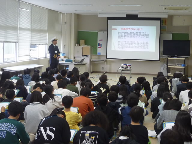 6年生の総合では,キャリア教育として,いろいろな職業の方のお話を聞く学習が始まっています。 この日は,佐渡汽船の船長さんをお招きし,仕事の内容や魅力,苦労話などを語っていただきました。 熱心にメ …
