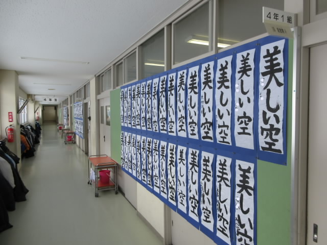 水曜日の学習参観に合わせて校内書き初め展が開かれています。 冬休みの練習の成果が発揮され,力作がずらりと並びました。 どれも見応えのある作品に「いいね!」