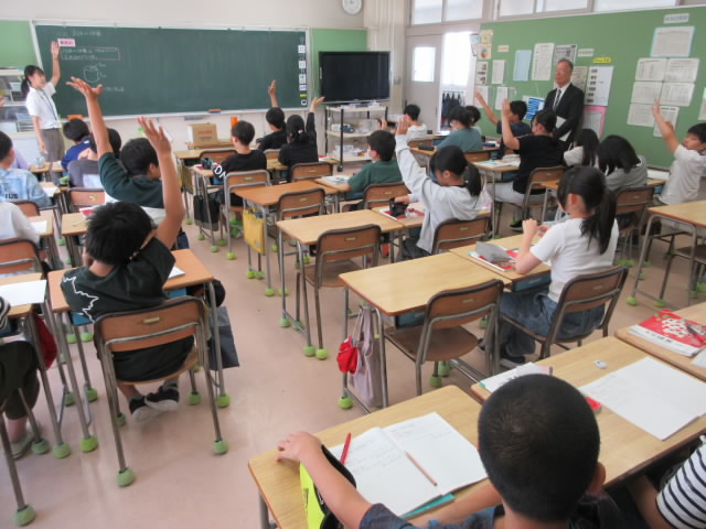 この日のためにたくさん授業準備をしてきた実習の先生の意気込みに対して,しっかりとした授業態度と反応で応える6年生。