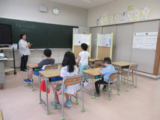 さくら学級のこのクラスでは,生活単元で計画しているお祭りに向けた授業をしていました。