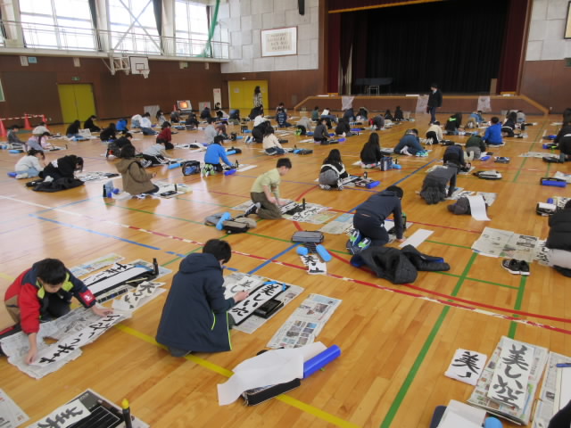 大きな荷物を持って登校してきた5年生が生活班ごとに集合し,体育館で出発式が行われました。