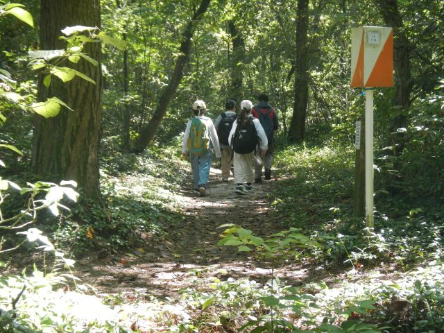 自然の家周辺に設置されているオリエンテーリングポストを見付け,グループで得点を競います。
