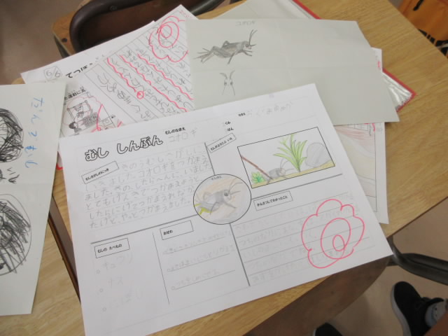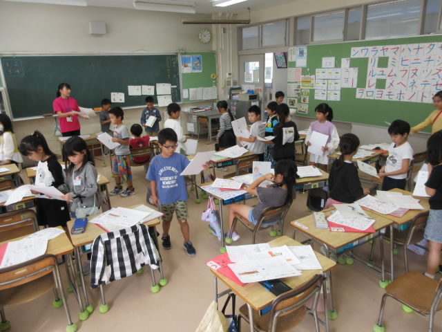 1年生は,クラス総出で学習の成果物を個人ファイルに挟む作業をしていました。