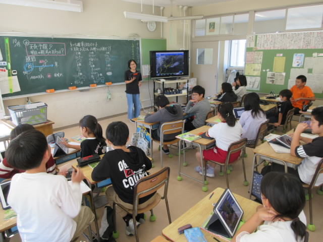 気象衛星ひまわりの雲画像から明日の天気を予想し,天気予報士風に発表しました。