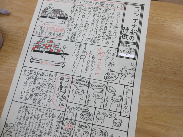 5年生は社会科校外学習として行った新潟東港で学んできたことを新聞形式でまとめていました。