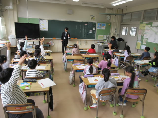 先生の問い掛けに真剣に応え,元気よく手が挙がります。