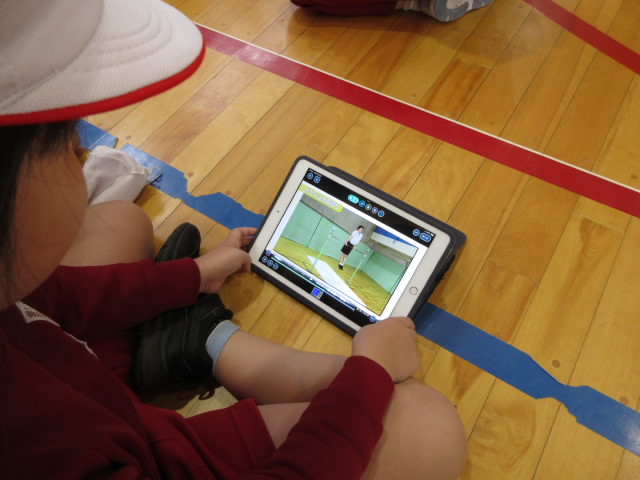 今週から体育館に鉄棒が設置されましたが,早速3年生が取り組んでいました。