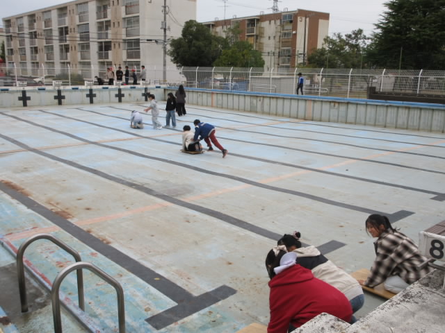 バトンスローや天板スケートボードなど,普段できない遊びに大喜びの6年生でした。