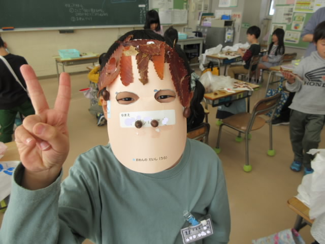 木工用接着剤を上手に使って,自分だけのオリジナルお面が完成して「いいね!」