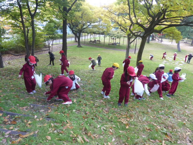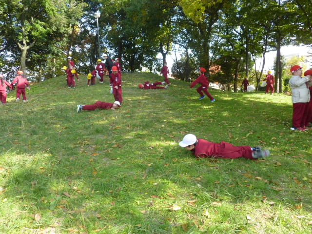 公園の小山に上って転がり下りるなど,からだ全体で秋を楽しむこともできました。