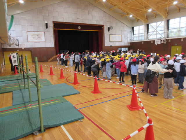 その場にしゃがんで放送を落ち着いて聞いてから,避難行動に移ります。