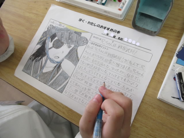 おすすめの本紹介カードは,一人一枚作成して掲示します。