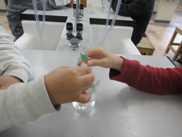 この日は,試験管の中の空気が温まって膨らむ様子について,石鹸水を使って実験しました。