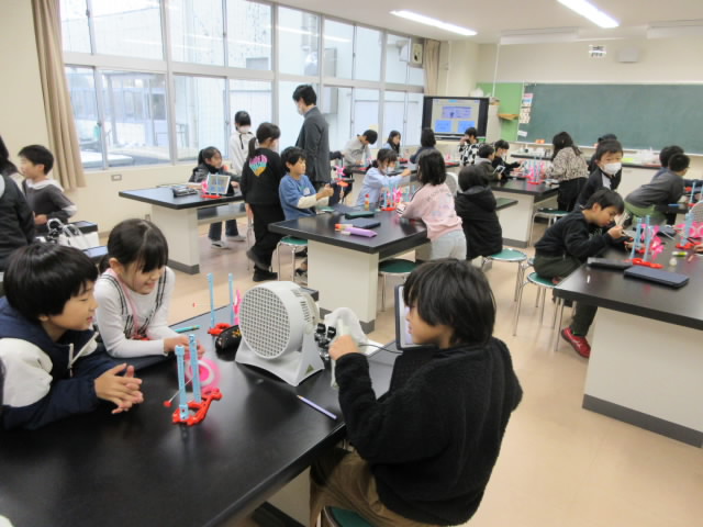 理科で「風のはたらき」について学習している3年生は,風の強さと物を持ち上げる力の関係について調べていました。
