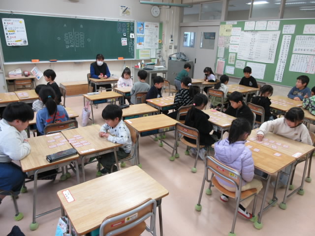 1年生が早速取り組んでいる五色百人一首は,百人一首を20首ずつ5色(1年生はピンク)にグループ分けした教材です。