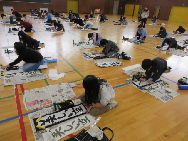 4年生は学年で一堂に会して,書き初めを行いました。