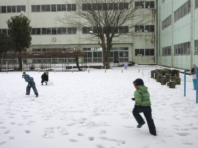 天候が少し落ち着いた20分休み,外で雪遊びを楽しみました。