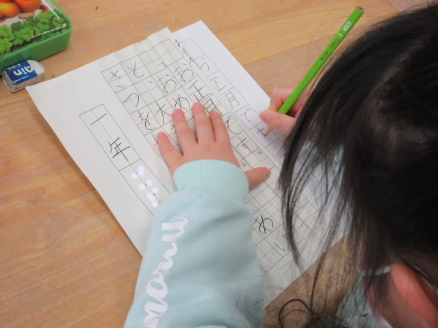 書くマスのすぐ隣に折ったお手本を並べて置くことで,お手本を見やすくしています。