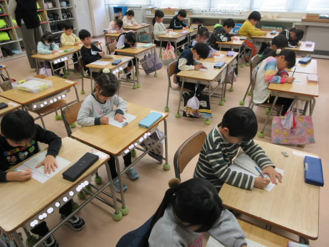 書き初め本番に向かうこのクラスは,ほどよい緊張感に包まれていました。
