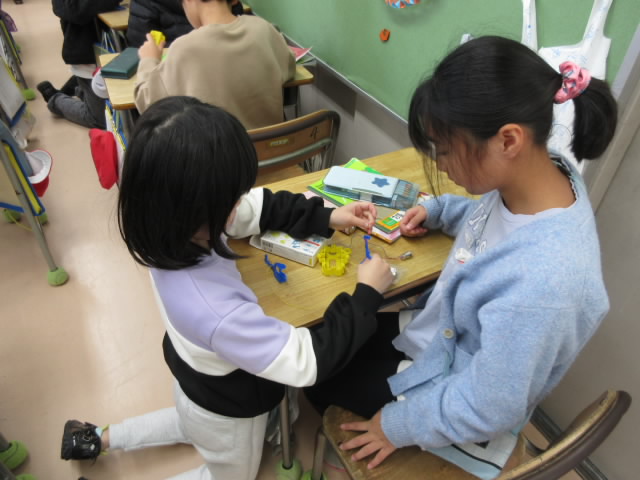 説明書を見て実験キットを組み上げるところで手間取りますが,友達同士自然と教え合いができていました。