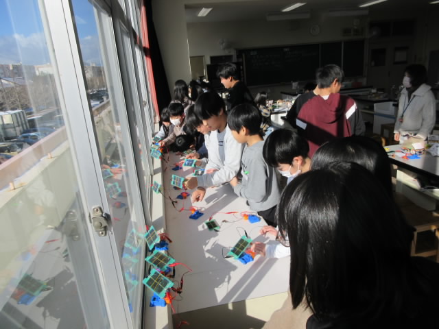 説明書を見て実験キットを組み上げるところで手間取りますが,友達同士自然と教え合いができていました。