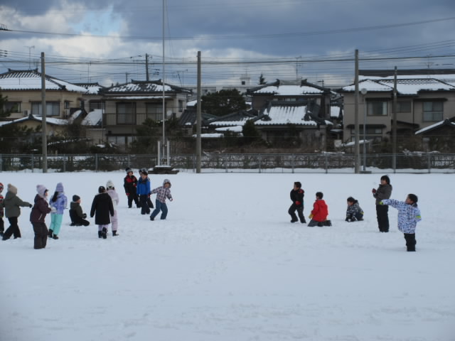 今日,グラウンドに雪遊びに出た学年は2年生でした。