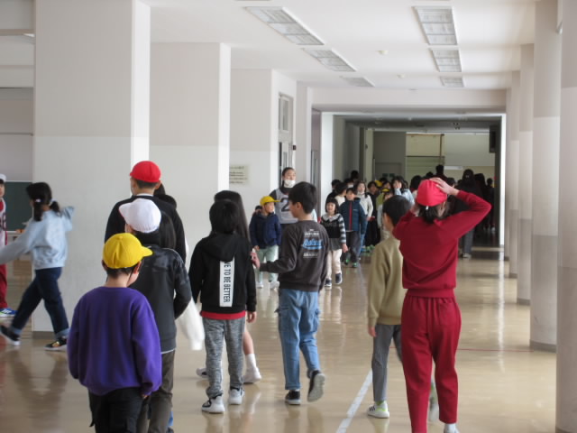 体育館からスタートし,校舎内に逃げた6年生をグループのみんなで探し回ります。